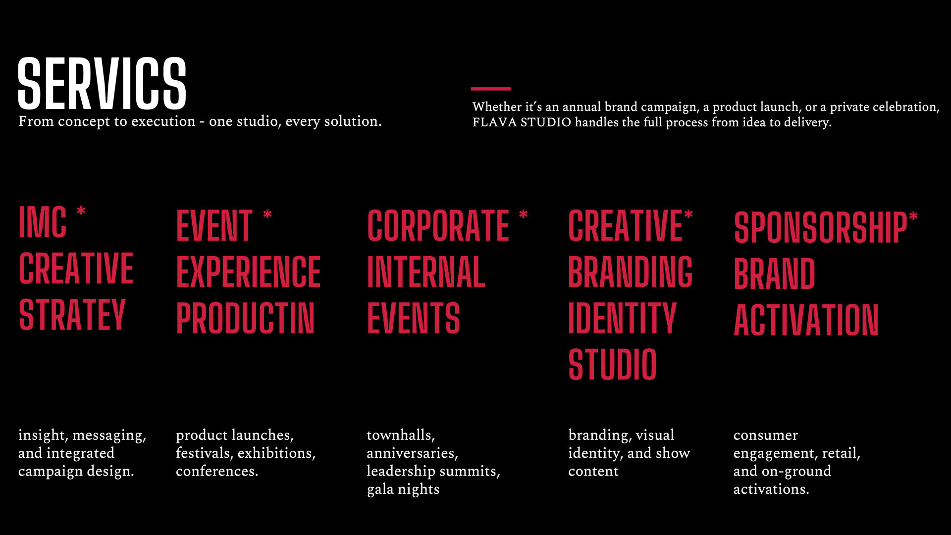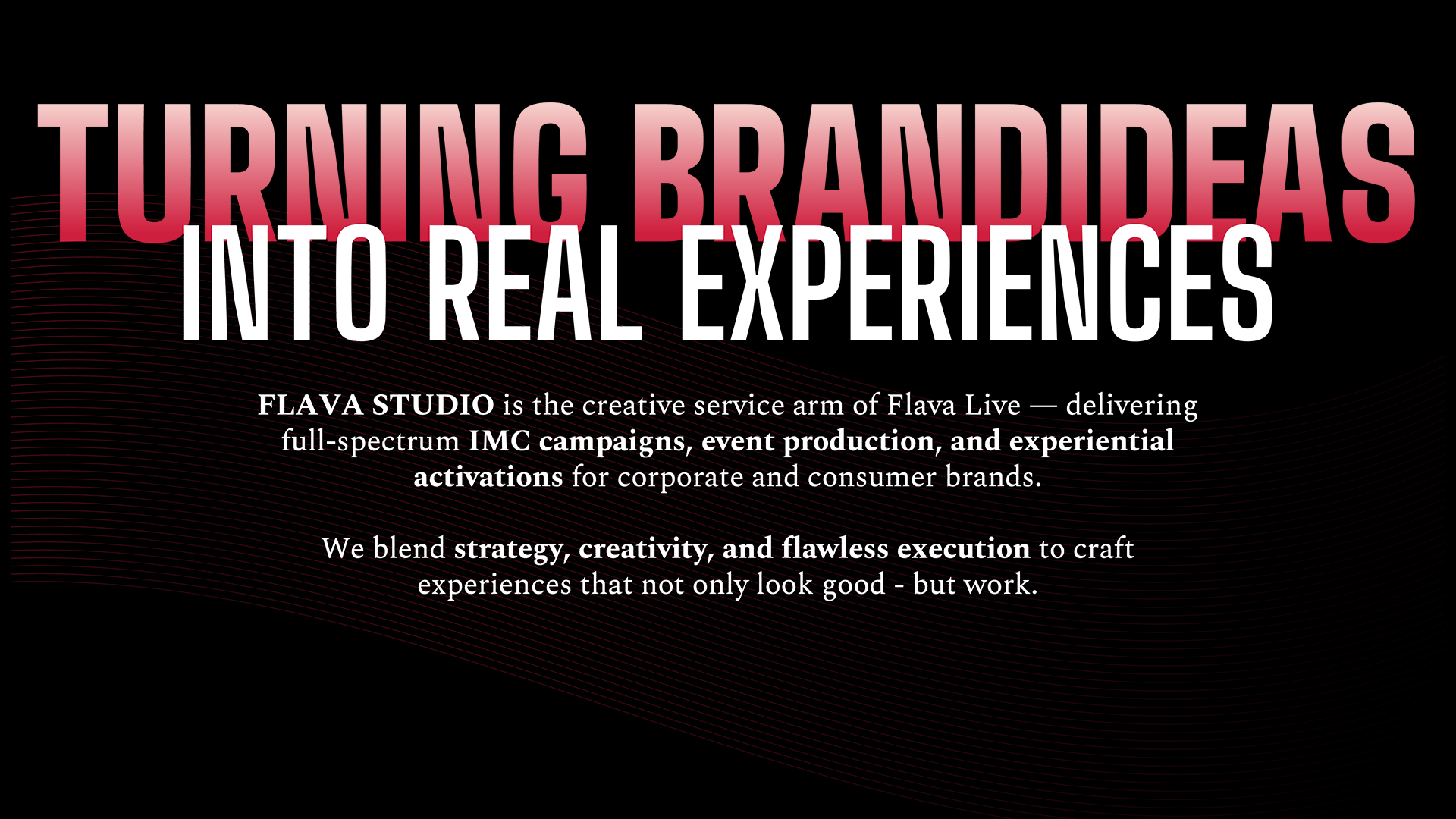 Flava Live Develops And Operates Experiential Platforms, Cultural Productions, And Creative Brand Services. From Youth Playgrounds To Theatre Stages, From Mass Festivals To Brand Campaigns - We Make Experiences That Move People And Deliver Impact.